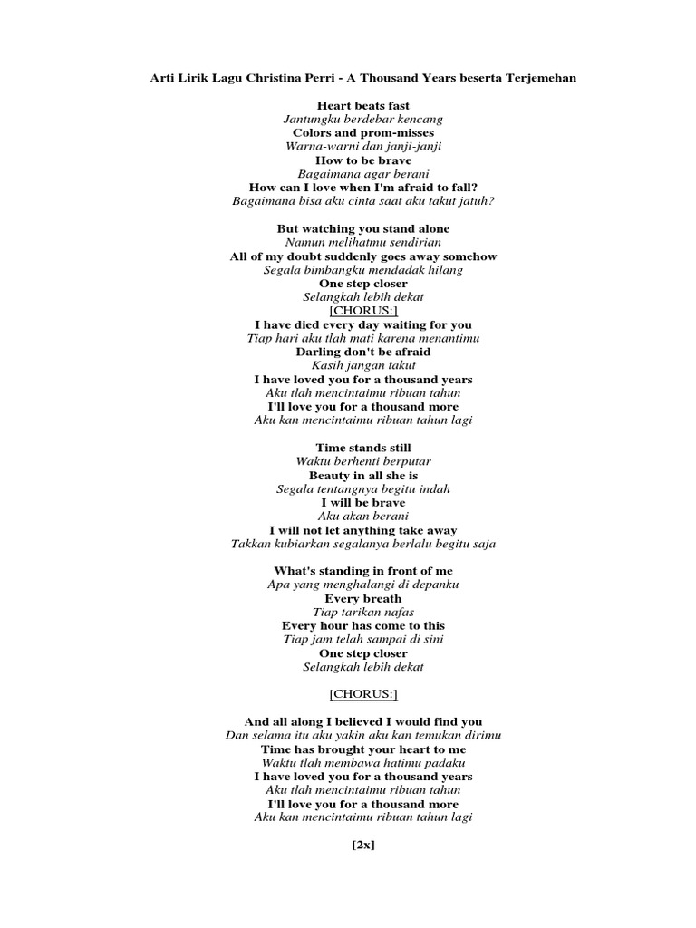 Lirik lagu a thousand years. Check spelling or type a new query. We did not find results for: Maybe you would like to learn more about one of these?